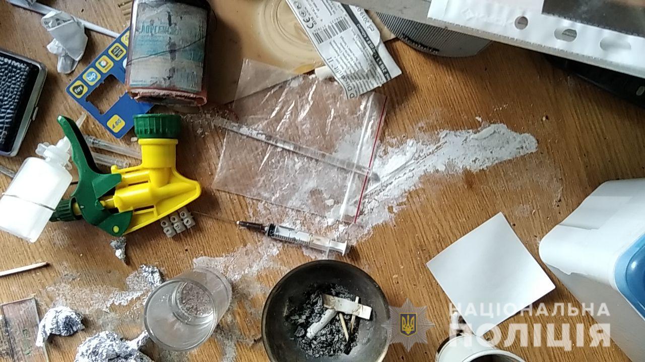 Поліцейські виявили пляшки, білу порошкоподібну сировину, прекурсори, лабораторний посуд та інші, необхідні для виготовлення синтетичних наркотиків, приладдя та пристосування.