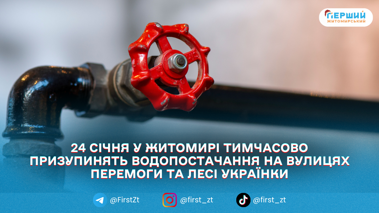 У Житомирі 24 січня через аварійно-відновлювальні роботи тимчасово призупинять водопостачання за окремими адресами.