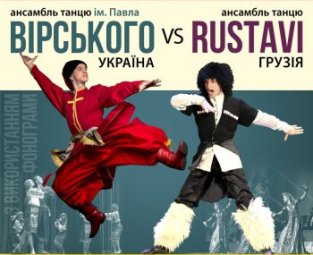Гордість України та гордість Грузії – всім відомий ансамбль ім. П.Вірського та не менш славетний ансамбль «RUSTAVI» – презентують житомирянам справжній танцювальний поєдинок!