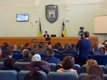 Заяву з проханням включити до складу Житомирського виконавчого комітету трьох нових членів зачитав представник «Автомайдану» Валерій Арушанян.