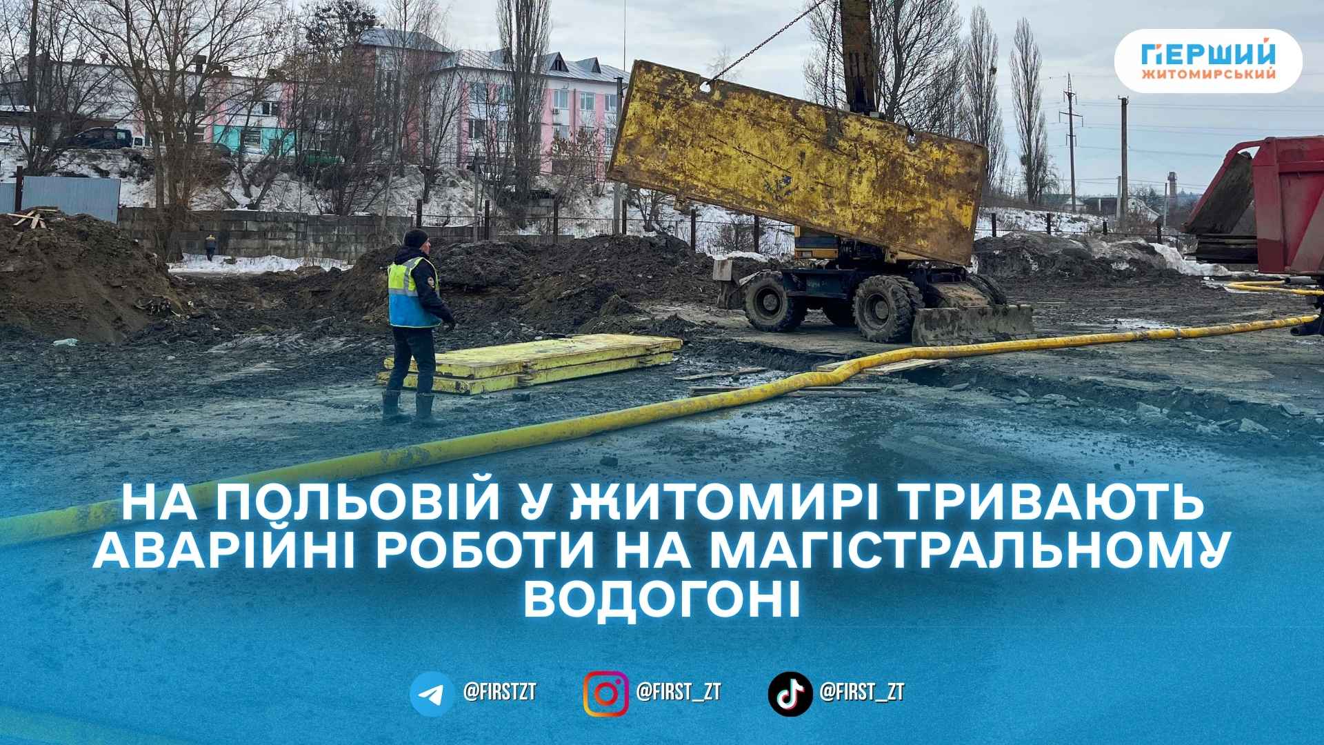 У Житомирі на Польовій тривають аварійні роботи на магістральному водогоні, через що в частині міста призупинили водопостачання. Про це 2 березня повідомила Житомирська міська рада.