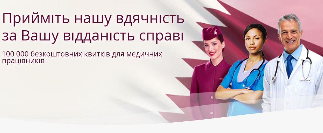 Найкраща авіакомпанія світу Qatar Airways повідомила про цікаву акцію для медичних працівників: на знак вдячності за наполегливу працю та відданість справі, катарська авіакомпанія дарує 100000 безкоштовних квитків на власні рейси!