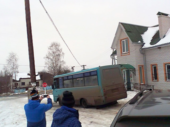 Як тільки до автобусу наблизилась колона автомайданівців, водій вибіг з магазину і втік від активістів.
