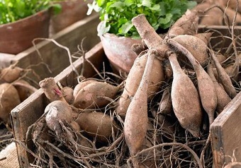 Обрізає стебла на висоті 10 см. Зрізує обережно, щоб не пошкодити стебло з бруньками. Без них не буде паростків навесні. Викопує. Для дезінфекції занурює у темний розчин марганцівки на 30 хв. Потім розкладає корінці на сонці, щоб висохли.