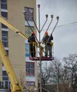Вже у середу на бердичівлян та гостей міста чекає велике свято, котре продовжиться цілий тиждень. Саме цього дня, о 16.00 біля великої ялинки, що поруч дитячо-юнацької школи ім.В.Лонського (колишній кінотеатр), планують запалити першу свічку у кількаметровій менорі. Зводити менору (так у євреїв називається храмовий світильник, який є головним символом Хануки) почали цього понеділка.