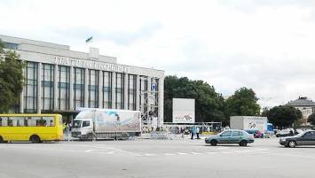 Цьогорічна сцена як завжди розміщатиметься перед драмтеатром на тротуарі. Щоправда, на самій будівлі вчора встановили герб міста та конструкцію "З ДНЕМ МІСТА", якої у попередні роки не було. Ймовірно, сцена закриє все ж цей напис.