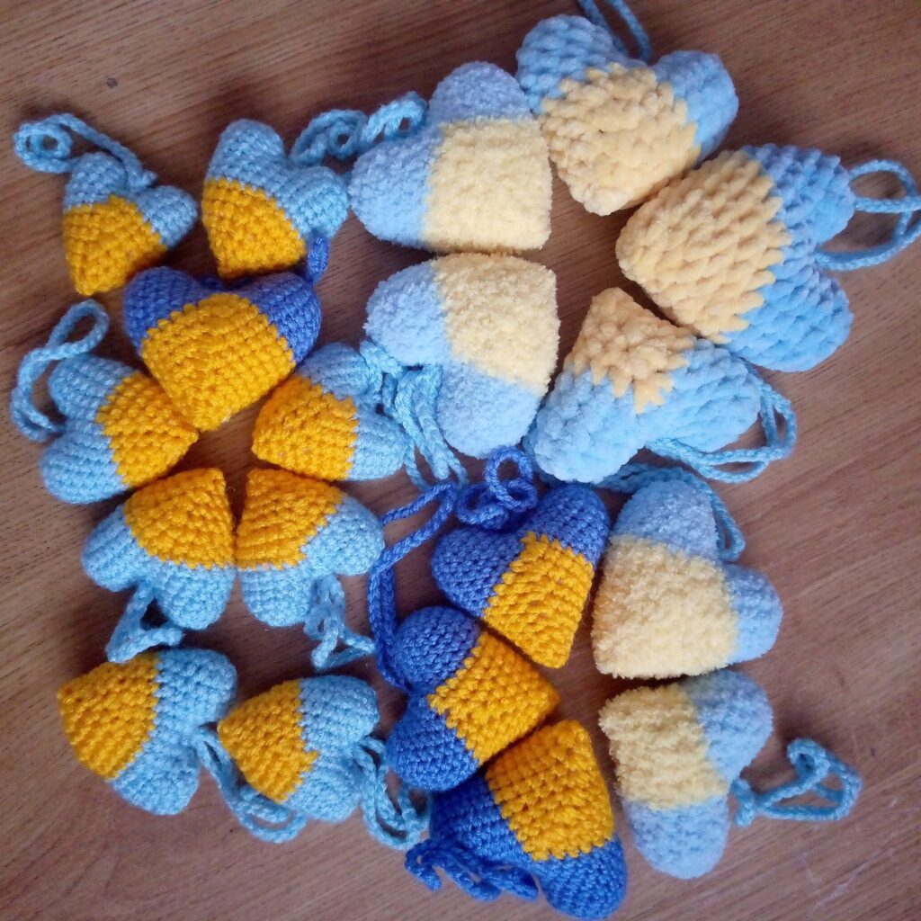 «Настав час викорінити все російське з нашого життя, бо, на жать, ніхто вже не в змозі повернути втрачені життя чи відмінити всі ті страшні речі, які сталися на українській землі з 2014 року. Досі дивуюсь майстриням, які представляють виготовлену їх руками україночку, а на фоні грає російська пісня. До всього ще й з піною у рота захищають своє право розмовляти російською. Для мене такі люди як з іншої планети. Наче війна їх не стосується і не торкнулася, – продовжує житомирянка. – Завдяки нашим відважним ЗСУ життя не зупинилося і ми можемо насолоджуватися приємними моментами мирного життя у містах без війни. Постійно думаю, що роблю мало чи не достатньо для допомоги у збереженні життя наших хлопців і дівчат на фронті та наближення спільної перемоги. Задля цього творчі зусилля направляю в корисне русло. Виставила на продаж картини, роблю різну сувенірну продукцію, магніти, які передаю друзям за кордон, аби вони продавали їх і так само збирали кошти на армію. Ми з родиною, як і всі українці, слідкуємо за новинами, радіємо успіхам наших ЗСУ, сміємося з мемів про бойового гусака та милуємося і пишаємося псом Патроном. Так і з’являються мої в’язані іграшки. Українські символи і кольори також заполонили мою творчість. Її я переношу на магніти, сумки шопери, картини. Ще занадто рано святкувати, веселитися та голосно сміятися на усіляких заходах, бо війна триває. Люди досі гинуть щодня. Ми не повинні відступати хоч як би це нам не набридло. Маємо підтримувати захисників, свою країну. Хто як може. Робити грошові перекази, плести сітки, кікімори, нашоломники, допомагати руками, доправляти гуманітарні вантажі, щукати амуніцію та автомобілі на фронт. Це все дуже потрібно, щоб зберегти безцінні життя наших мужніх військових. Разом до перемоги».