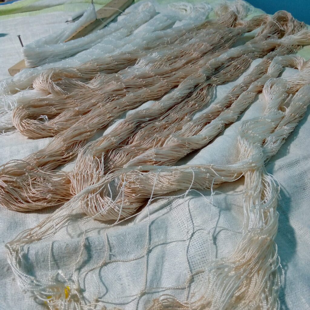 «24 лютого стало переломним в житті кожного з нас. Страх, нерозуміння того, що ж буде далі, неможливість повірити в те, що наші близькі родичі з росії можуть так просто від нас відмовитися. У той страшний день я вирішила, що творчість не на часі. І спрямувала свої сили та вміння на допомогу нашим захисникам, – згадує Віра. – Речі із гардеробу відповідних кольорів занесла у волонтерський штаб для плетіння маскувальних сіток. Сама теж долучилася до цього. З часом помітила, що виникла потреба в основах для цих сіток. Вивчила інформацію в інтернеті, переглянула відео, знайшла у шафах човники, які належать нашим з чоловіком татусям, взялася за плетіння. Не зупиняючись продовжую цю діяльність і донині. Незабаром досягну позначки у 100 метрів. Це саме власноруч сплетена основа, ширина якої переважно 4 метри. Часто в цьому мені допомагає чоловік».