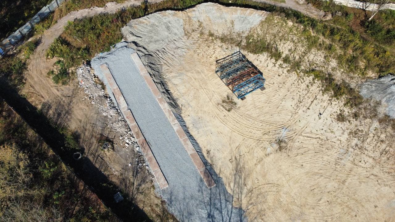 Станом на жовтень 2021 року забудовник уже підготував будівельний майданчик, зрізав близько 80 дерев та розпочав зводити підсобні приміщення – фото зроблені під час зйомок відео про знесення Панчішної фабрики.