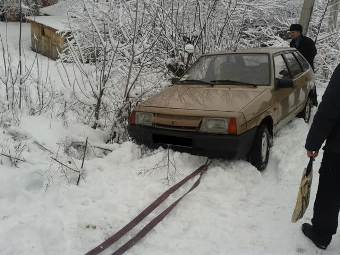 По прибуттю до місця бійці ДСНС встановили, що внаслідок погіршання погодних умов, водій легкового автомобіля марки ВАЗ 2109 не впорався з керуванням, з’їхав з проїжджої частини і завис над проваллям в сніговому заметі.