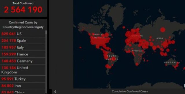 Станом на ранок 22 квітня коронавірус вразив 2 564 190 людей у світі