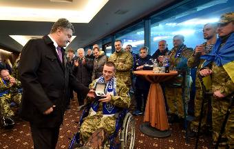 – А нещодавно мені випала нагода відвідати матч улюбленої команди. Це був такий собі подарунок на мій 23 день народження. Але я ніколи б не міг уявити, що спостерігатиму за перебігом матчу поруч із Президентом України Петром Порошенком. На згадку про цей матч Президент подарував мені годинник. А ще запитав про мої проблеми. Я сказав, що й досі не отримав посвідчення учасника бойових дій.