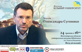Лекцію слухачам Вільного університету в Житомирі 24 травня читатиме український політик, економіст і громадський діяч, президент Асоціації українських банків, Сугоняко Олександр.