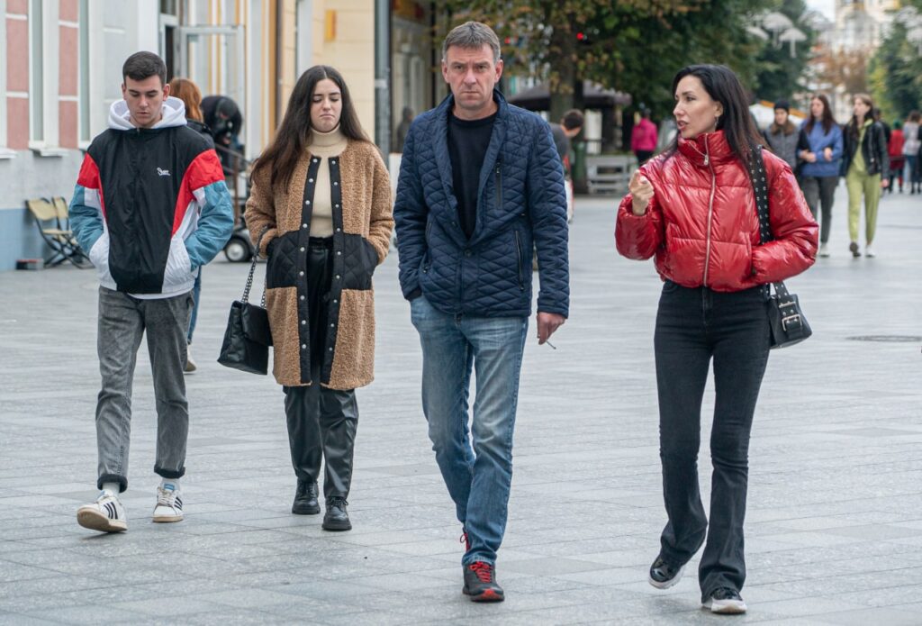 На вулицях Житомира все більше кольору хакі та в тактичному одязі житомирян. Із похолоданням жителі міста утепляються – більшість вже в куртках та пальтах, демісезонному взутті.