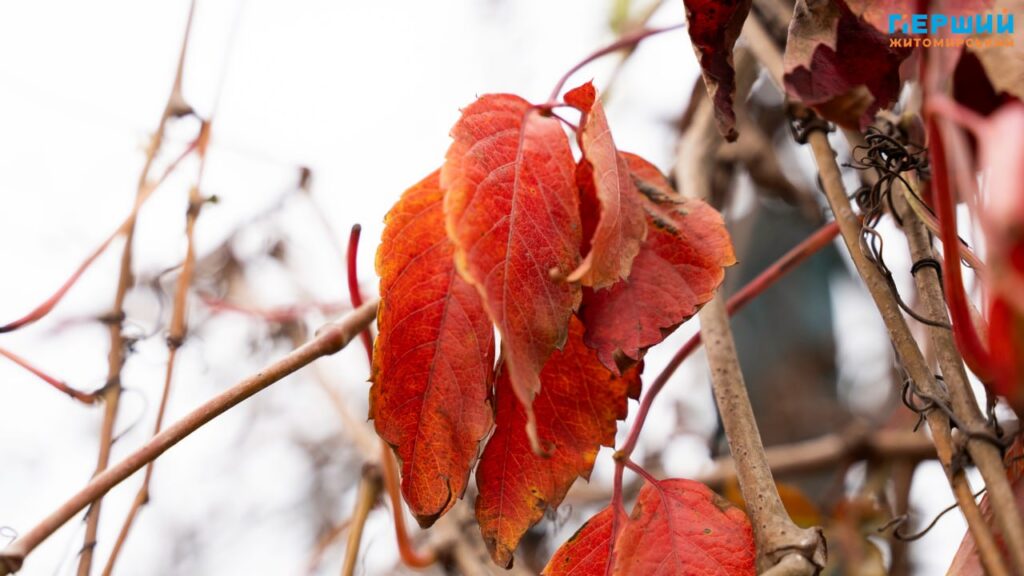 У Житомирі природа потихеньку переходить у зимовий стан — листя темнішає, сохне й опадає, а кущі та дерева вкриваються останніми барвами сезону.