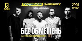 13 липня на головній сцені Житомира на майдані Корольова для житомирян на запрошення Ігоря Гундича виступить гурт «Без обмежень» та спеціально запрошений гість – «Цвіт кульбаби».
