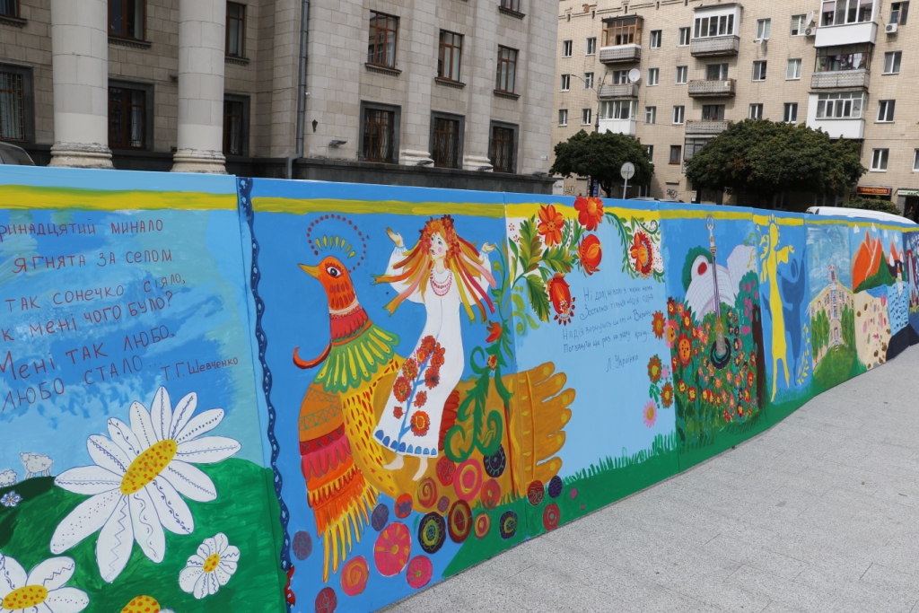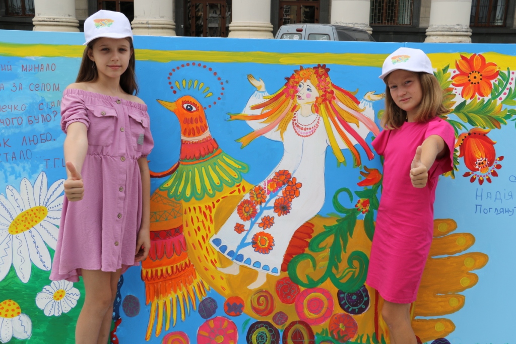Діти малювали калину, соняхи, мак, птицю, космос, літак «Мрія», хліб, рушник, пшеницю, снопи, півня, курку, яблука, груші, гарбуз, Карпати, море, кораблі, пам’ятки архітектури, деякі міста України та ще багато образів-символів країни.