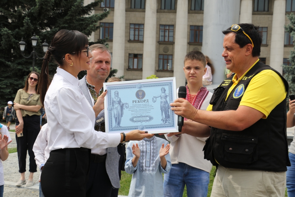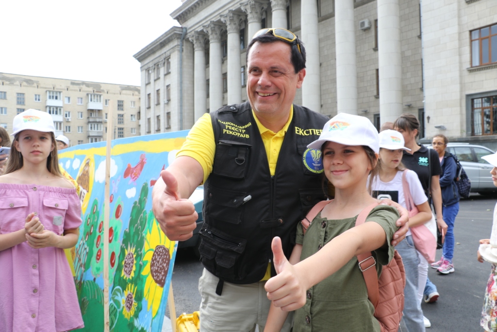 «Висота – 1 м 44 см, довжина 60 м 12 см. Житомир! Новий національний рекорд! Найбільша кількість символів України на картині, створеній дітьми, – 277!», – оголосив результат представник Національного реєстру рекордів України Віталій Зорін.