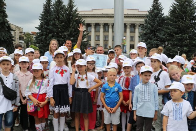 У Житомирі 24 серпня під час заходів до Дня Незалежності встановили рекорд України – діти намалювали найдовшу картину з найбільшою кількістю національних символів.
