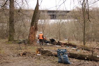 Зранку 3 березня робітники КП «Інспекція з благоустрою м. Житомира» Житомирської міської ради розпочали прибирання території схилів під Богунським мостом, за адресою: Героїв Десантників (Маршала Жукова), 7.