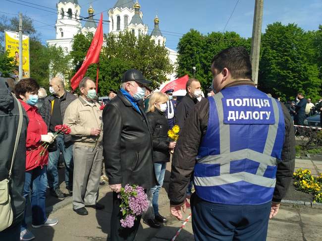 Попри карантинні обмеження на майдані перемоги зібралися близько 50 житомирян. Більшість з них – літні люди, колишні комуністи та прихильники партії ОПЗЖ.