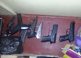 Під час обшуків помешкань зловмисників вилучено бойовий револьвер іноземного виробництва, чотири травматичні пістолети (два з них вже перероблені під стрільбу бойовими набоями калібру 9 мм), мисливську рушницю та заготовки під метальні ножі. Зброя зберігалася без належних дозвільних документів.