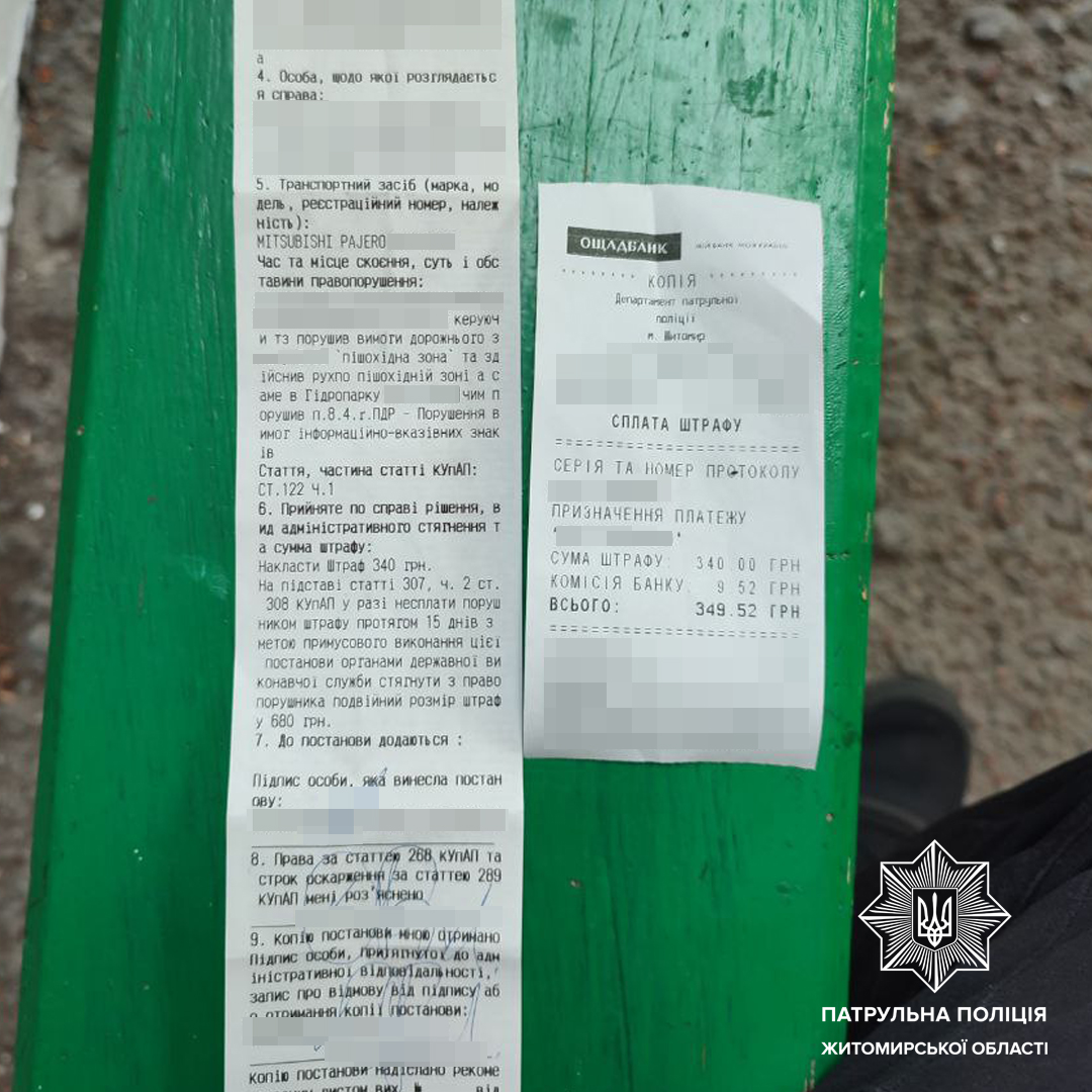 На вихідних у Гідропарку в Житомирі пасажир однієї з авто самовільно підняв шлагбаум, у результаті чого декілька авто в’їхали на пішохідну зону. Водії отримали штрафи.