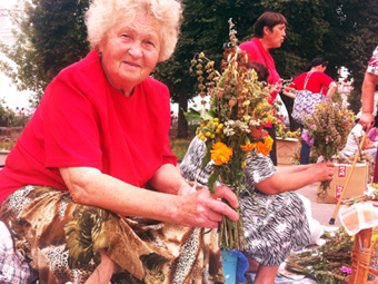 З самого ранку біля житомирських церков починають торгувати традиційними букетами до Маковія, які люди називають «маковійчики». Ганна Степанівна привезла товар із-під Житомира. Розповідає, що усі лікарські трави збирала сама, букети в’яже так, як її іще навчила бабуся.