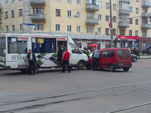 За словами очевидців, у аварії ніхто не постраждав. Зараз на перехресті, де сталася пригода, працюють працівники ДАІ.