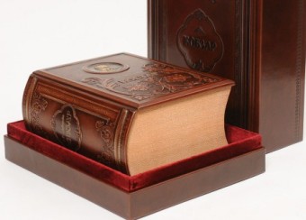 Видавець Юрій Корбуш на фестивалі "Книжковий арсенал" за 30 тис. грн продає "Кобзар" Тараса Шевченка у шкіряній обкладинці, виготовлений вручну.