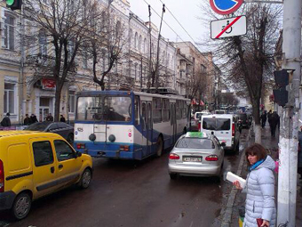 Тролейуси зупинились і випустили людей. Далі усі пішли пішки.