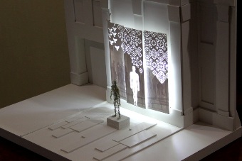 Контур Людини у вигляді отвору або пустоти площини буде символізувати втрату Героїв і в той же час – народження нового покоління. Площини встановлюються на різних відстанях від фасаду будівлі, будуть підсвічуватися. Створюється ефект світлового струменю, що виривається із середини Світлої Людини.