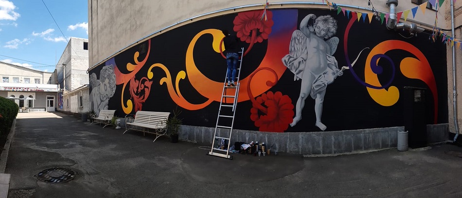 За словами художниці, мурал виконується у стилі петриківського розпису. Він присвячений коханню.