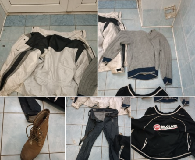 Був одягнений у куртку білого кольору з чорно-сірою вставкою, темно-сині джинси, чорну спортивну кофту та сірий светр. Взутий у світло-коричневі черевики.