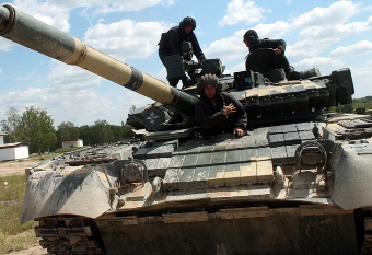 На загальновійськовому полігоні Високомобільних десантних військ Збройних Сил України на Житомирщині триває навчання танкістів ВДВ під керівництвом досвідчених офіцерів – учасників АТО. Курсанти навчального центру ВДВ виконують підготовчі вправи до контрольних стрільб.