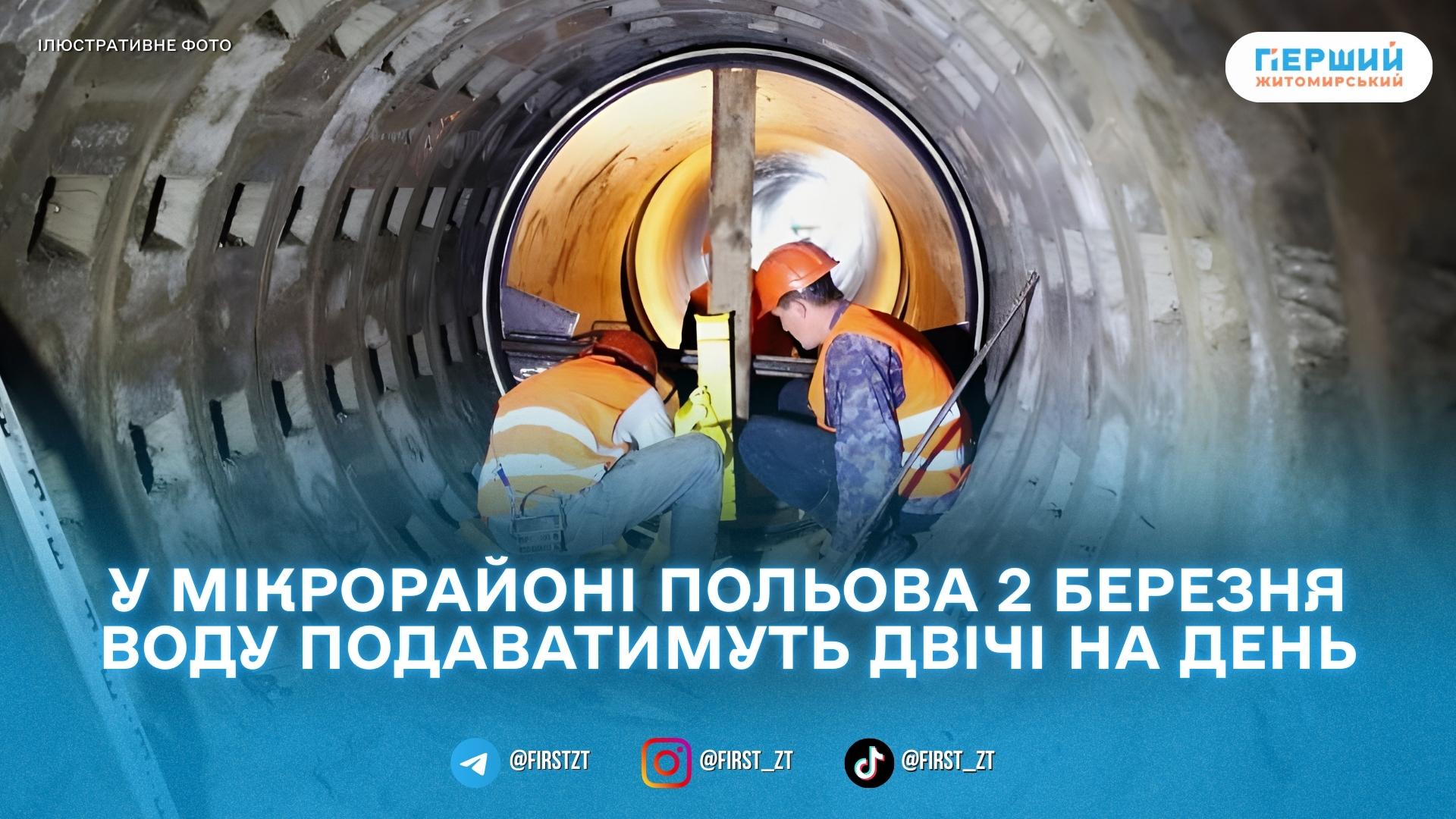 У мікрорайоні Польова в Житомирі 2 березня водопостачання здійснюватиметься за графіком. Про це повідомили в КП «Житомирводоканал».