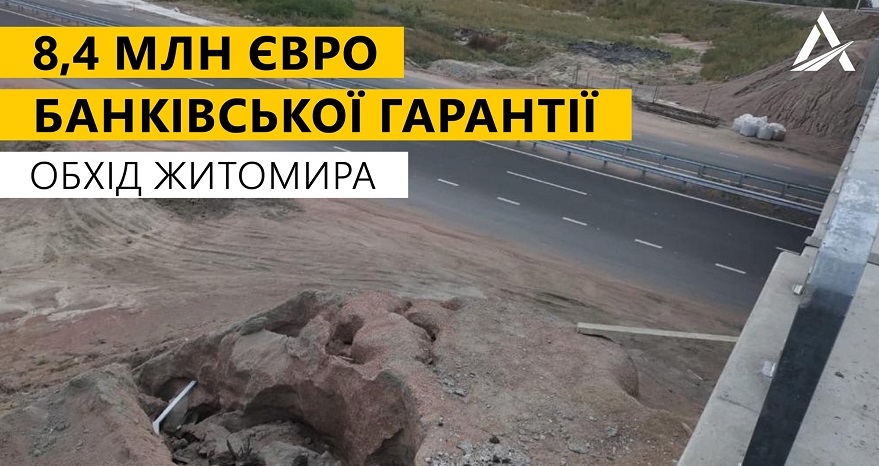 "Щоб захистити свої майнові права, Укравтодор скористався безумовною банківською гарантією, яку надав підрядник на суму 8 460 781,87 євро. Сума перерахована банком-емітентом на рахунок Укравтодору та буде використана для фінансування будівництва обходу м. Житомир. Після завершення усіх юридичних процедур, визначення обсягів робіт, які слід виправити та завершити буде оголошено новий тендер на реконструкцію обходу Житомира".