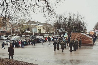 76-міліметрова пушка ЗІС-3 випуску 40-х років стала на сторожі миру на постаменті в Бердичеві.
