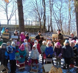 Днями лісова охорона з тамтешнього лісгоспу, розвішуючи чергову партію годівниць для птахів, в помічники запросила дітей, які запропонували прикріпити до годівниць синьо-жовті прапорці.