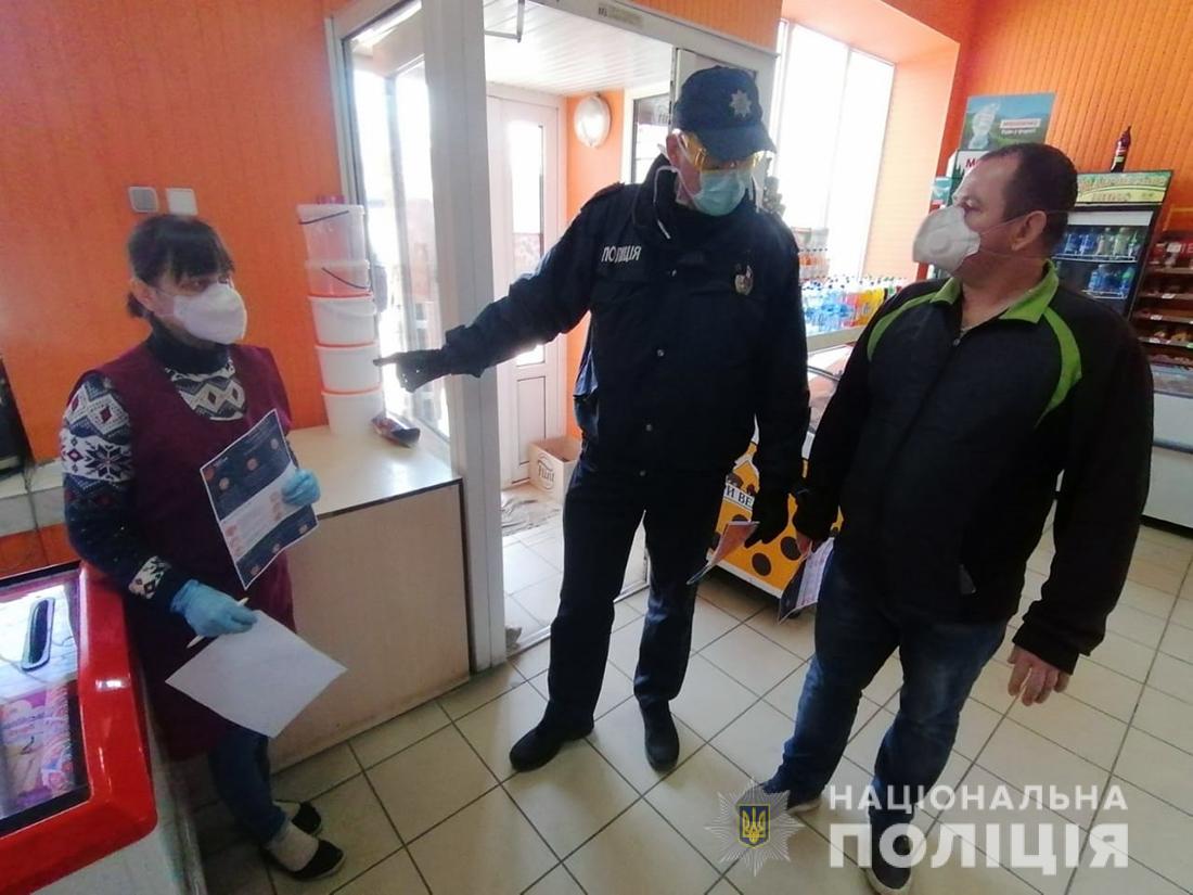 Правоохоронці перевіряють ринки і торгівельні центри, звертаючи увагу на роботу навіть дрібних крамниць та кіосків у населених пунктах області. Вони проводять роз’яснювальну роботу з відвідувачами, власниками та працівниками таких закладів, нагадуючи про необхідність дотримання обмежень, встановлених урядом.