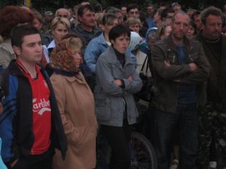 Він відзначив недопустимість "поширення відвертої дезінформації" про події у селищі з боку правоохоронних органів. За його словами, житомирська міліція заперечувала факт стихійного мітингу у Мирополі проти "циганського свавілля". На це мешканці почали вигукувати: "Ганьба!".