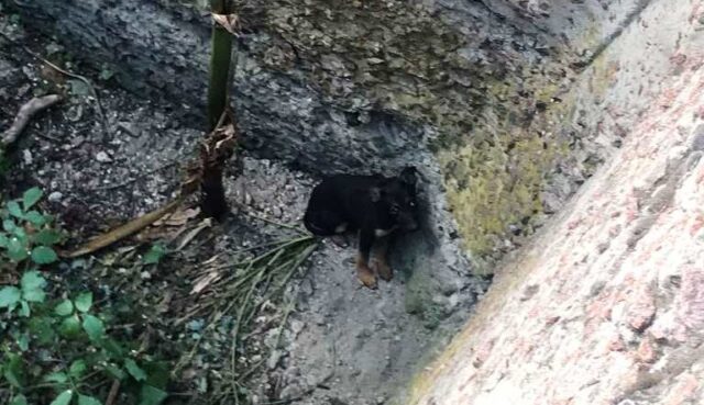На околиці Хорошева в 4-метрову яму провалилося цуценя. Сама собака вибратися не могла і жалісно скавучала.