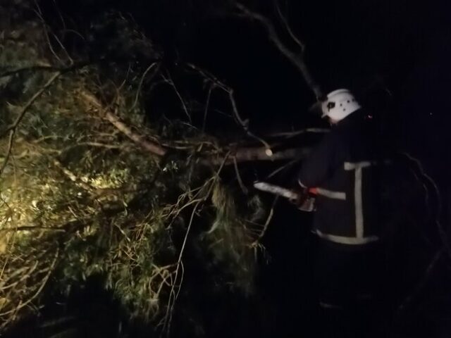 На подібні події рятувальники виїжджали вчора і в с. .Камінь цього ж району та с. Попільня Попільнянського району. У першому випадку рух на одній полосі автодороги перекрила суха верба, у другому – на проїжджу частину впали одразу дві сосни.