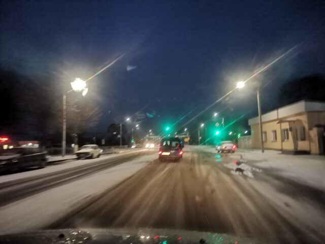«Перший сніг вже насувається з півночі області. М-21 Виступовичі – Житомир – Могилів-Подільський. Овруцький район. Дорожники тримають руку на пульсі. Водії, будьте обережні».
