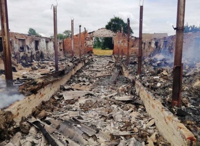 Вогнем пошкоджено перекриття та внутрішнє оздоблення, знищено дах, 19 т соломи та 21т сіна.