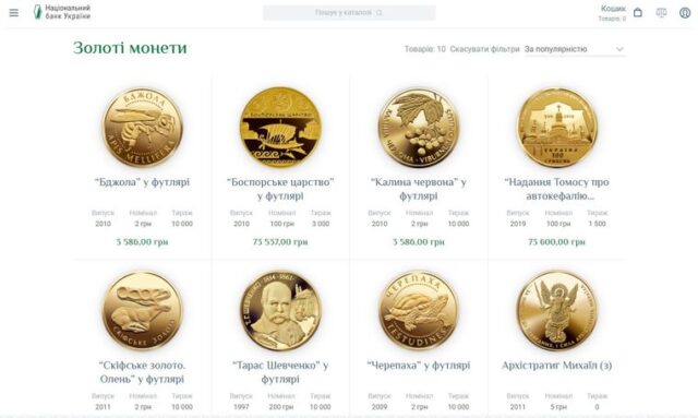 Нацбанк України відкрив інтернет-магазин, де реалізує пам’ятні монети зі сплаву із цинку, срібла та золота.