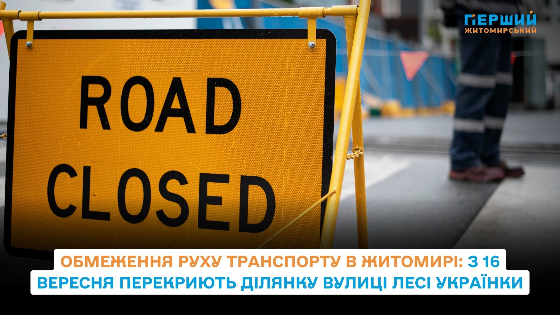 З 16 вересня в Житомирі буде тимчасово обмежено рух транспорту на ділянці вулиці Лесі Українки.