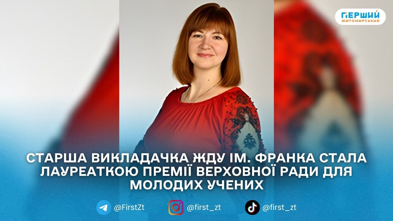 Народні депутати 4 грудня проголосували за постанову про присудження премії Верховної Ради молодим ученим за 2025 рік. Серед лауреатів — викладачка Житомирського державного університету імені Івана Франка Сніжана Кучерук.