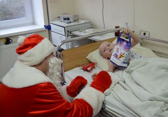 Маленькі пацієнти Центральної дитячої міської лікарні отримали солодкі подарунки до Дня святого Миколая 19 грудня 2013 року від Житомирського міського голови Володимира Дебоя.