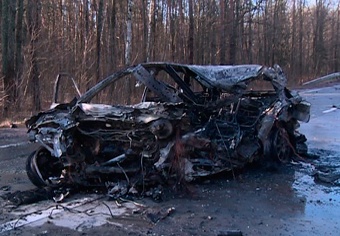 Від удару легковик відкинуло до колесовідбійника і він загорівся. Вогонь знищив автомобіль повністю, його керманич загинув на місці пригоди. Особу останнього, а також наявність у згорілому авто інших пасажирів нині встановлюють правоохоронці", – ідеться в повідомленні.